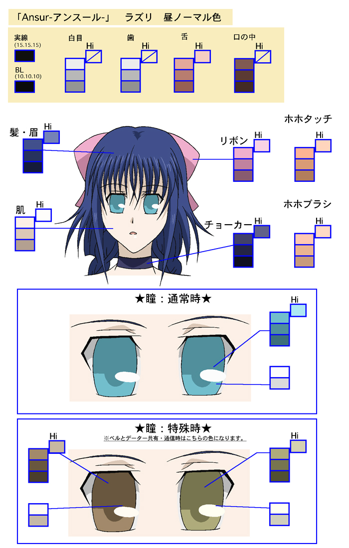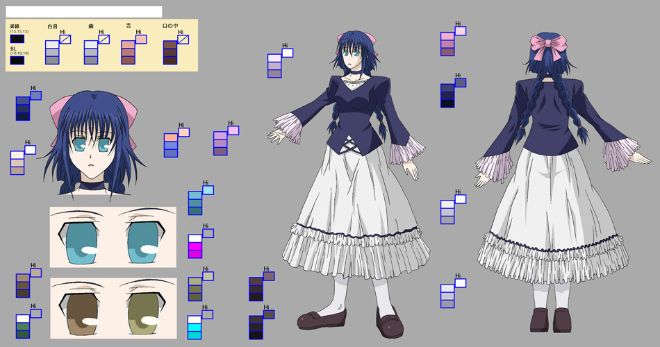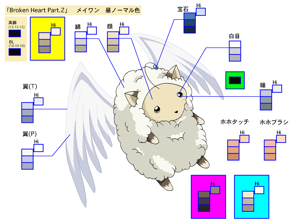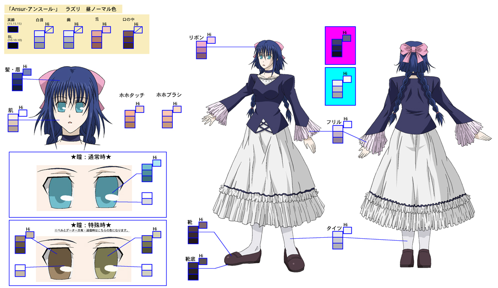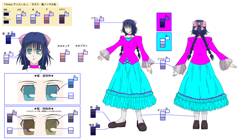 色指定表は簡単に説明する“キャラクターや小物等の色見本”です。