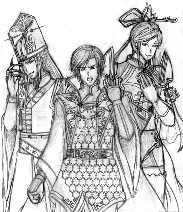 曹丕(真ん中)、司馬懿(左)、張郃(右)。